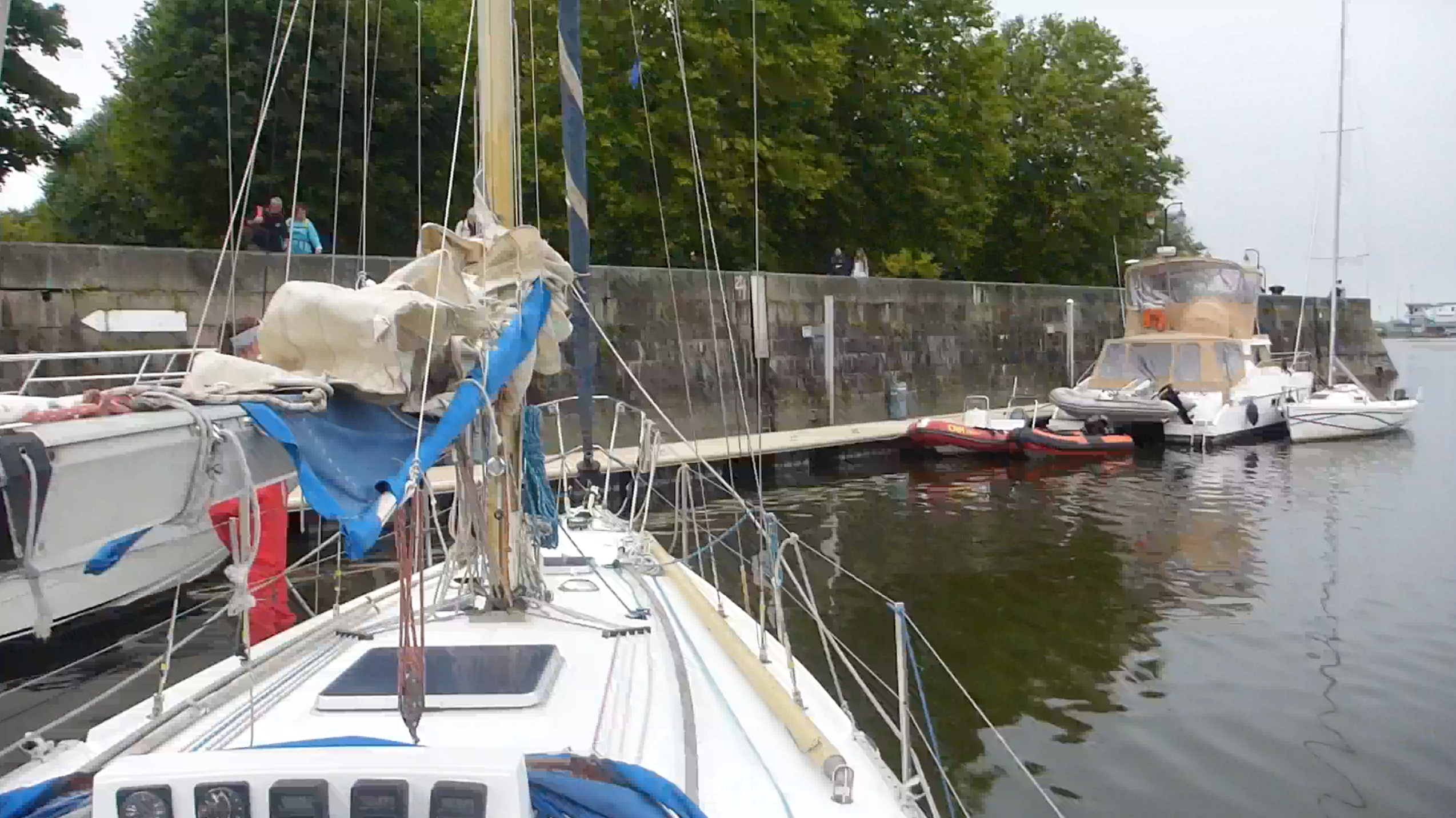- We saw a boat get its mast removed here and stowed on deck during our time here. It is very close to one of the entrances to the French canal system so this didn’t surprise me. You can get to Paris from here! I believe this is where Baremka came out of the French canal system when she was brought up from the Med by her previous owner.