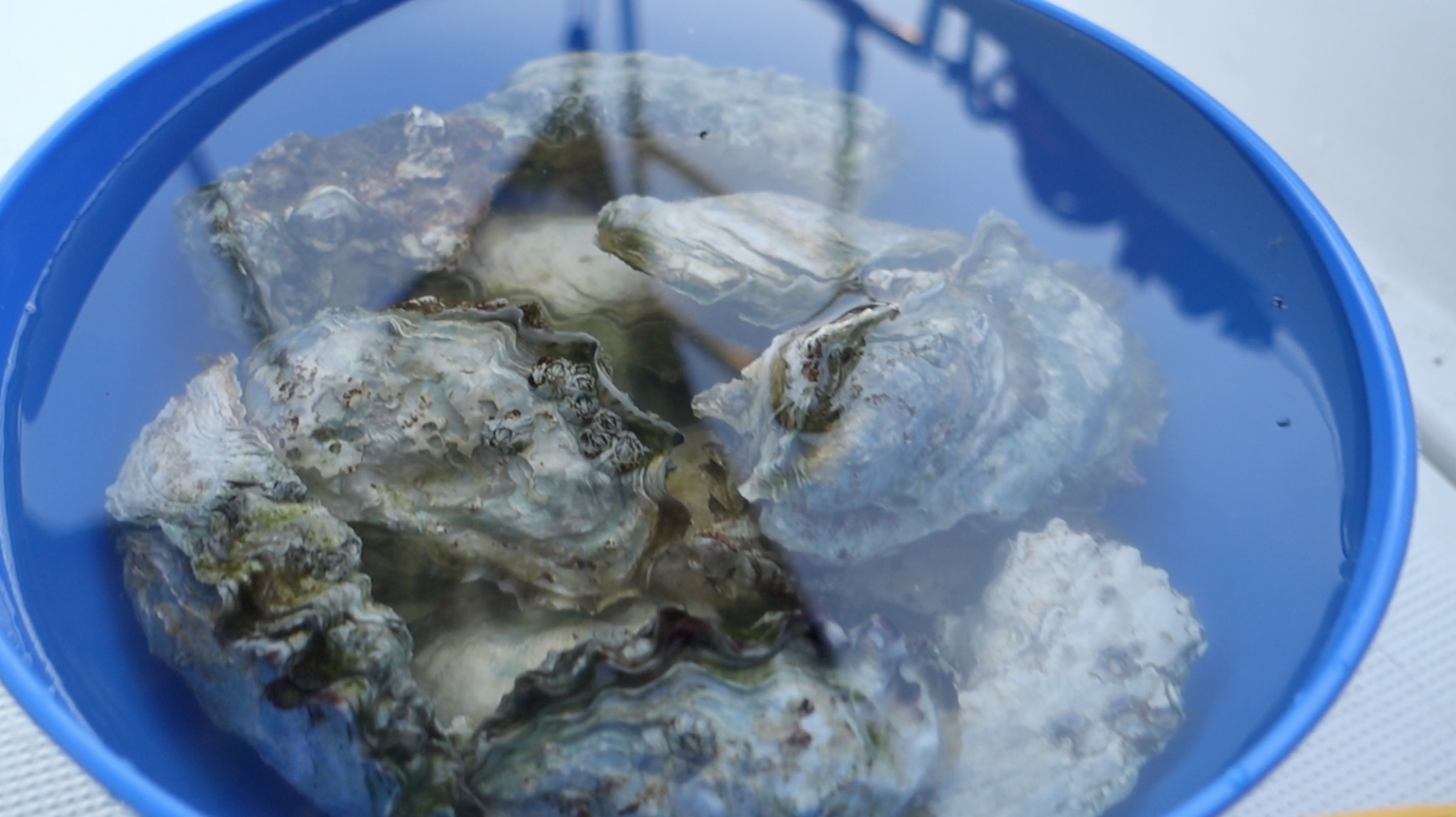 - There is an oyster farm just around the headland (you’ll probably see it on your way into the anchorge) and they are growing all over the surrounding walls of the anchorage. Because it is an artificial island, the walls of the anchorage are built from large (concrete?) blocks. Check out our YouTube video to see the haul of oysters we managed to forage!