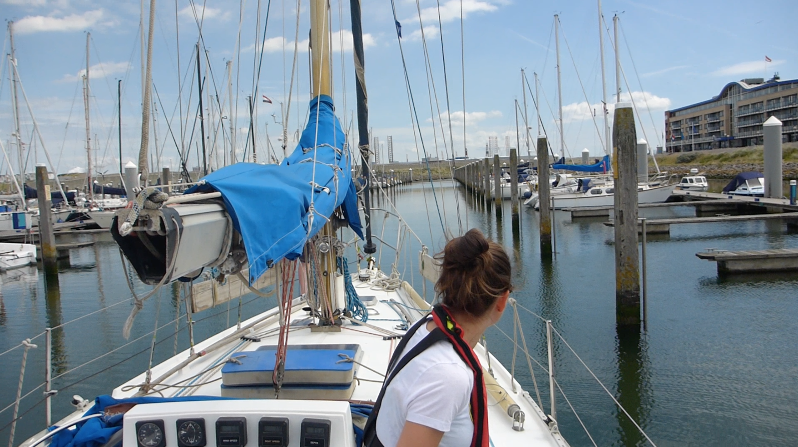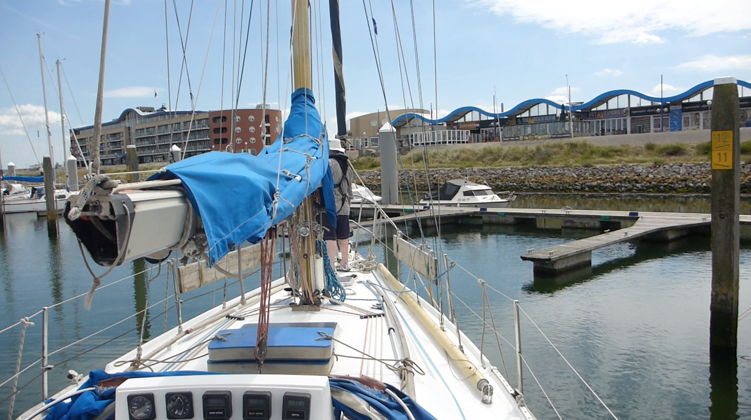 - We had to learn a new style of berthing here – they have finger pontoons here but there is also a large wooden pillar to attach youself to on the opposite side at the ‘back’ of the box. (Check out our video linked below where you’ll see us exiting our berth en route to Amsterdam).